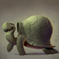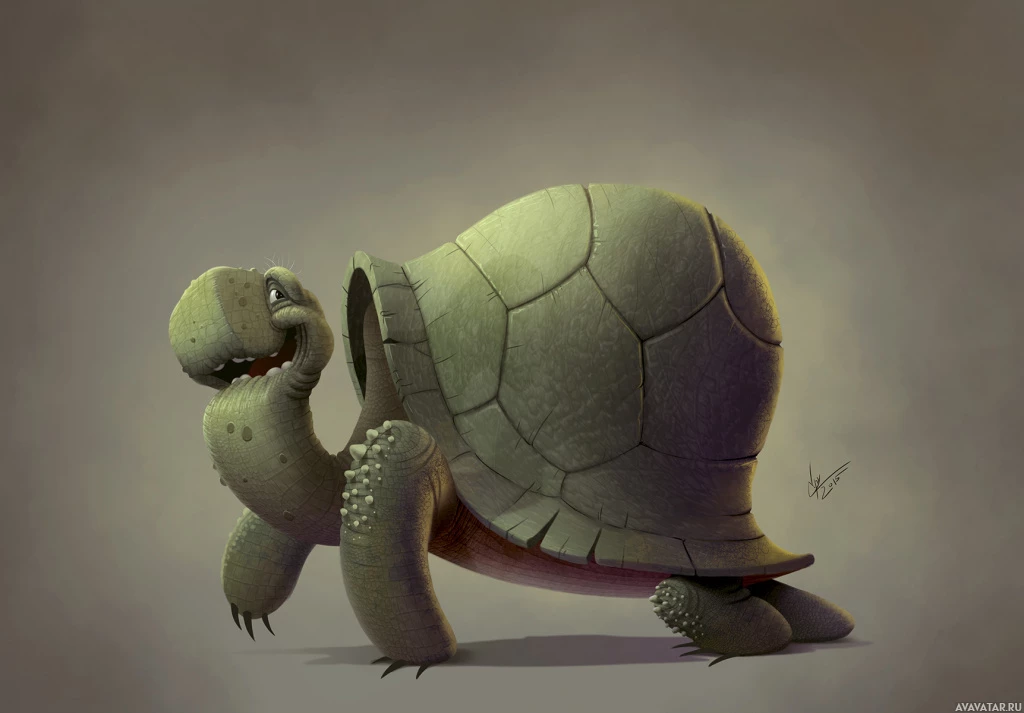 The image features an illustration of a turtle that appears to be anthropomorphized. It has a friendly expression and is standing on its