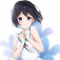 an animated character, which appears to be a young female with black hair and blue eyes. She is dressed in