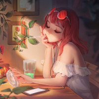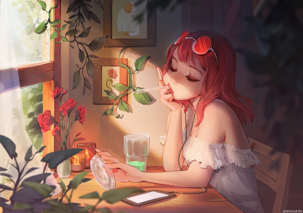 the tranquil ambiance. The character has a thoughtful expression on her face and seems to be enjoying