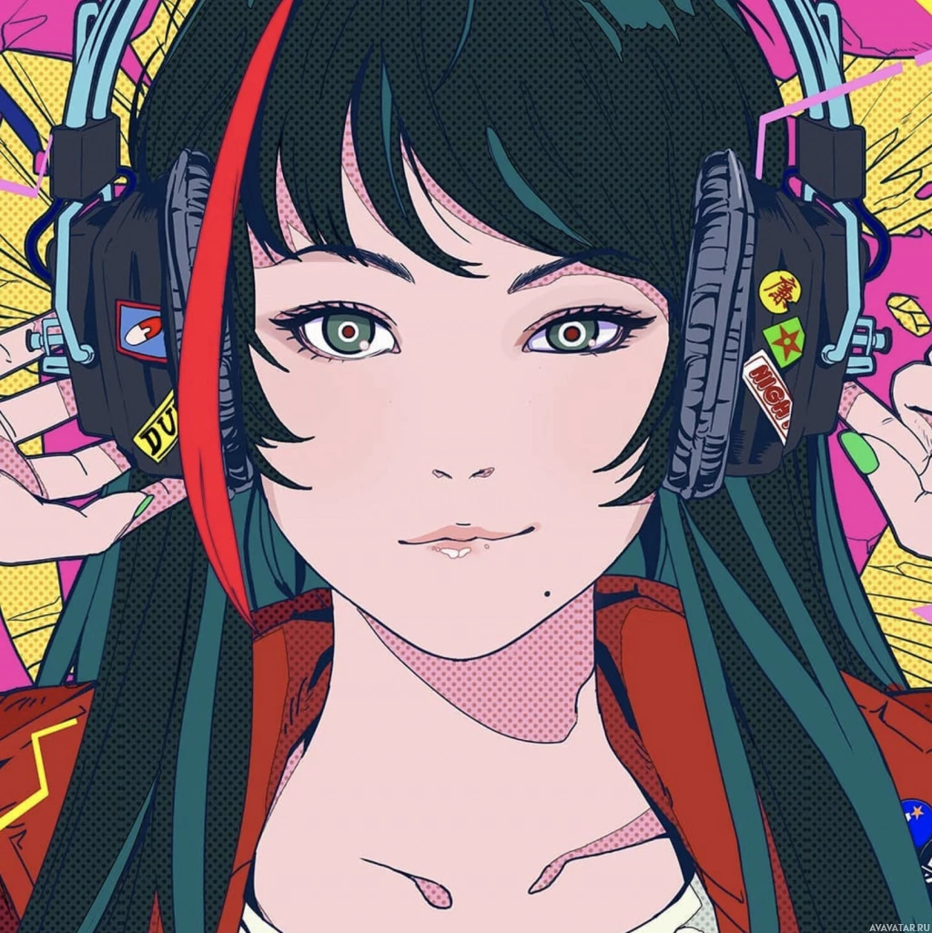 На этой иллюстрации изображена девушка с наушниками на ушах. У нее каштановые волосы, она одета в красную куртку, и у нее дружелюбное выражение лица. На изображении также присутствуют стилизованные элементы, такие как надпись "POP", которая придает ему яркий современный вид, соответствующий тематике поп-культуры.