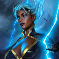 comic series. The image depicts Storm with her hair flowing and electricity around her, which are signature elements associated with this character's abilities in