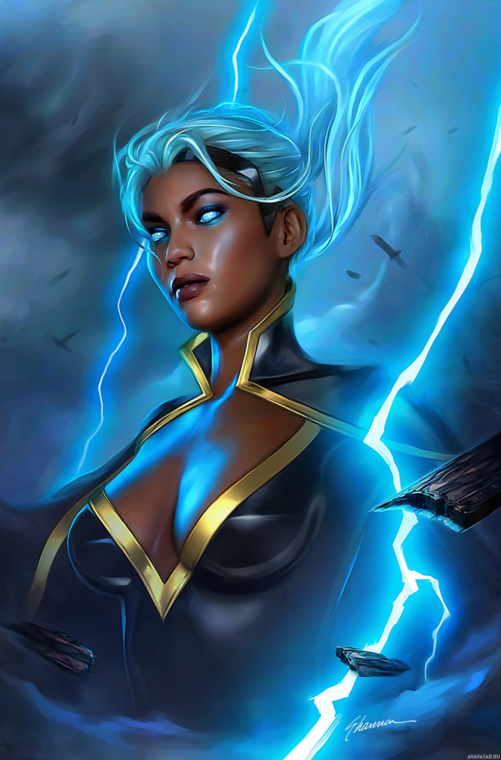 This is a piece of artwork featuring a character known as Storm from the X-Men