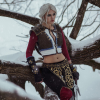 a snowy environment, possibly during winter, which complements the cold-weather attire of the character Ciri.