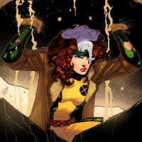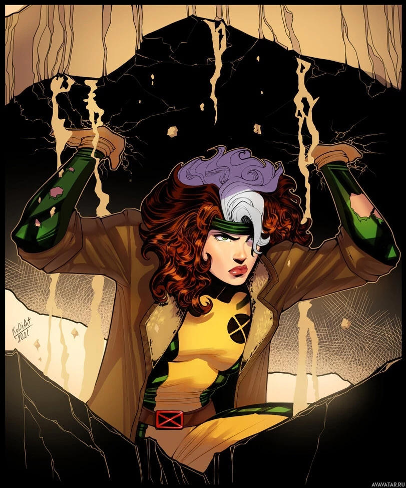 This is an image of a comic book illustration featuring the character Rogue from