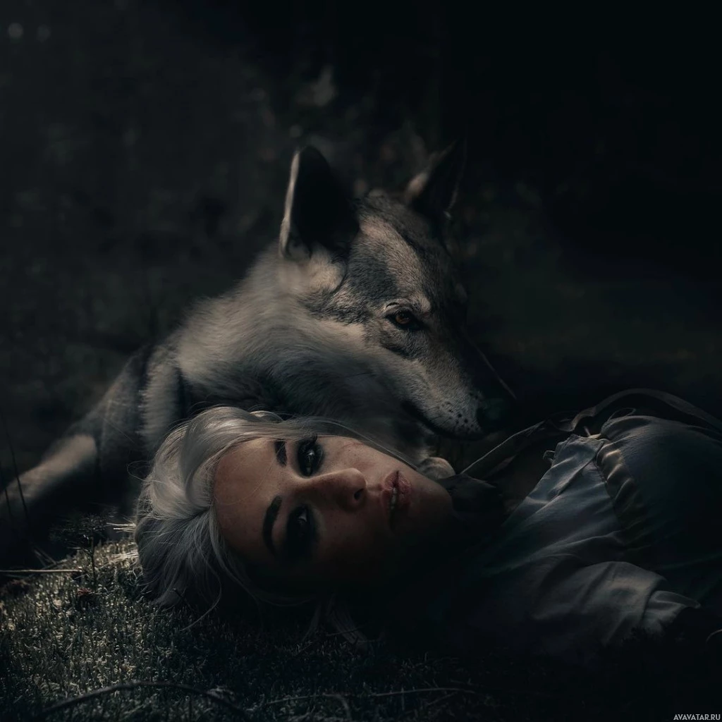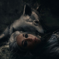 Wild Hunt." The individual is lying on the ground and appears to be resting or sleeping, with a wolf positioned nearby. The setting looks like it could be