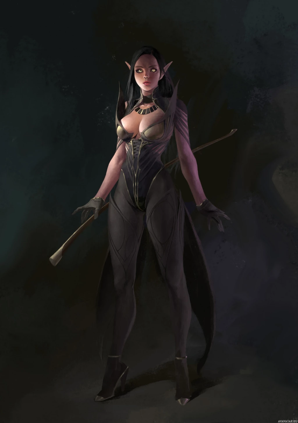 The image shows a fantasy-themed character that appears to be an elf. She is depicted with