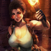 adventurous spirit and resourcefulness as she explores ancient ruins and battles enemies while on a quest to find treasure or artifacts. In this particular illustration, the character is shown holding a torch in one hand and what appears to be a weapon or tool in the other, suggesting that she is prepared for an action-