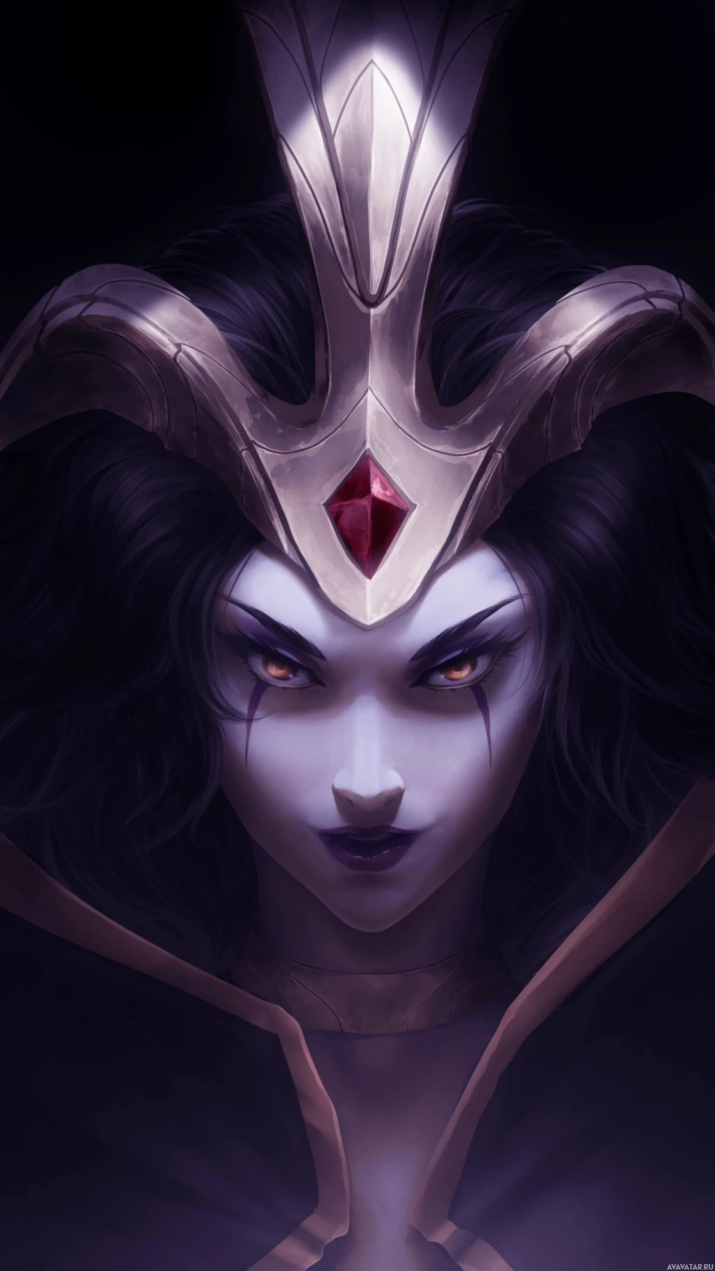 game setting, possibly as a villain or an enigmatic figure given her stern look and the mystical symbol on her head.