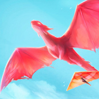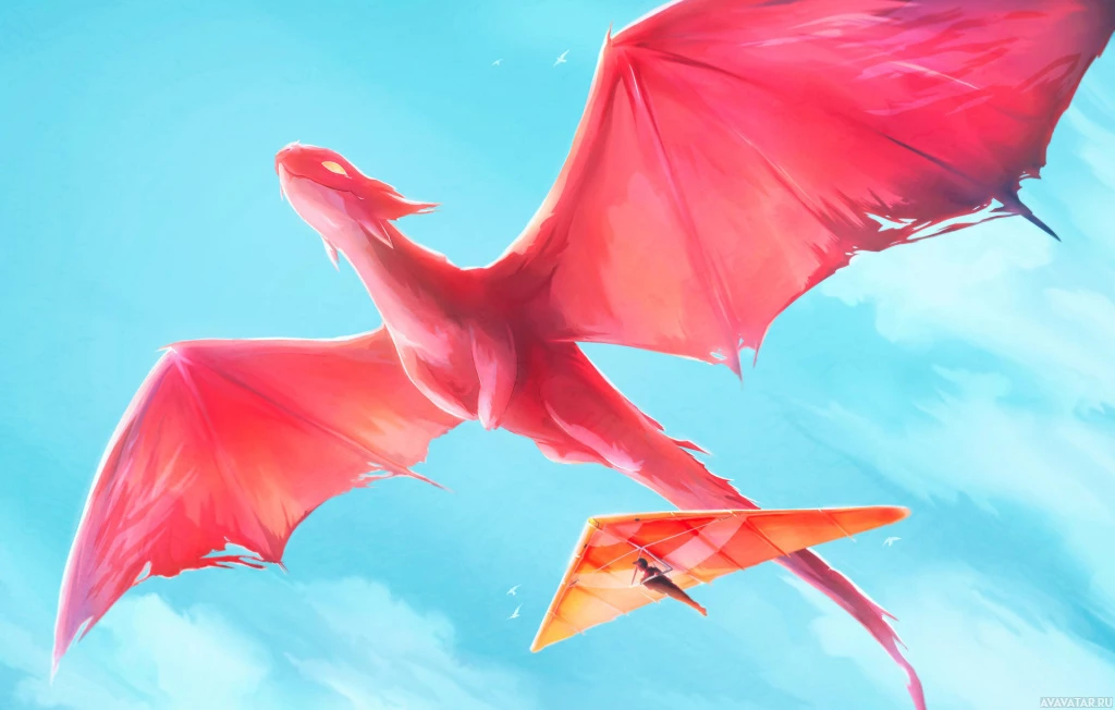 a dragon in flight. The dragon has vibrant red scales and is set against