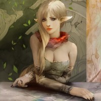 an illustrated character who appears to be a fantasy-style elf. She has long