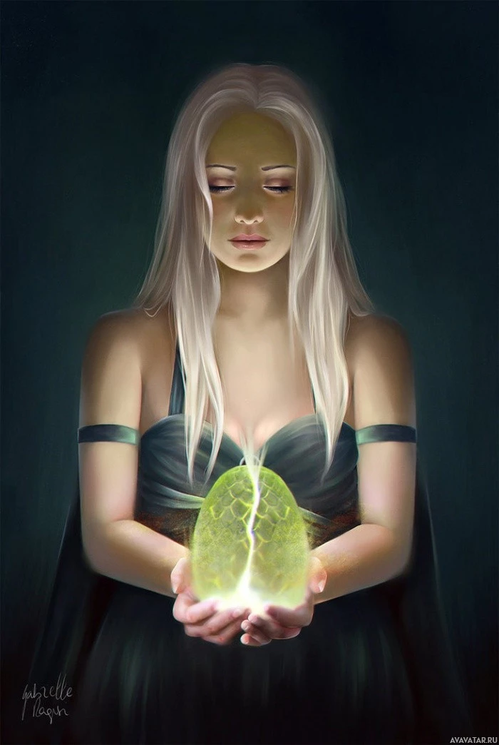 Daenerys Targaryen from the show. The lighting and atmosphere suggest a serene yet mysterious moment.