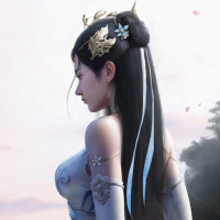a female figure with long, flowing hair and what looks like a mystical or magical appearance. She is wearing armor and holding a staff or wand of some sort. There are