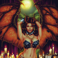 This is an illustration of a fantasy-themed character, styled as a succubus. The character has the upper