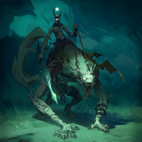 misty environment that suggests a battle or confrontation. The character on the werewolf is equipped with armor and weapons, implying they are prepared for combat. This scene is likely from