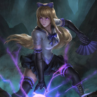 a video game, comic book, or animated series. The character is wearing what looks like a school uniform with a skirt, which adds to her