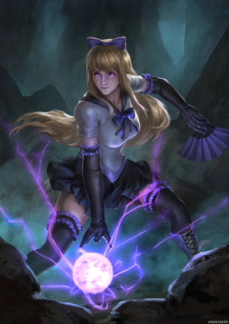 dynamic pose and suggests that she might have some sort of magical powers or abilities related to the use of energy or magic.