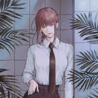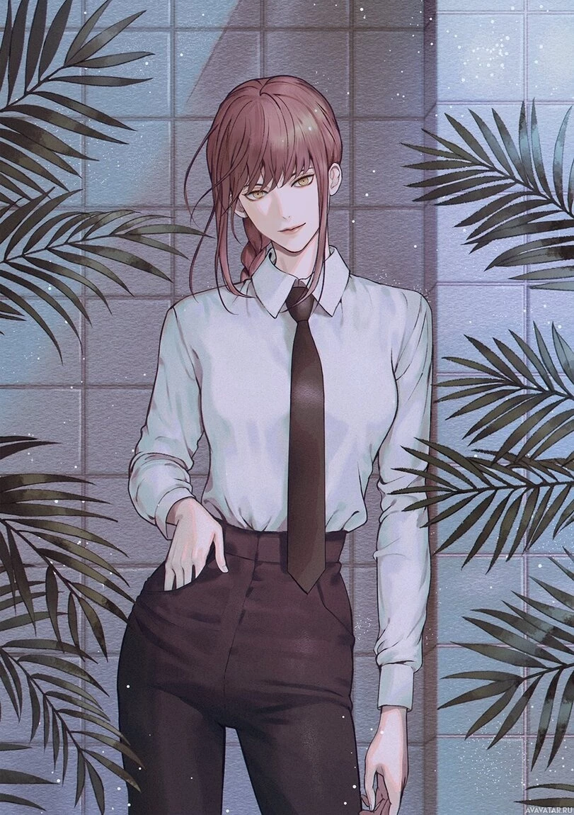 a black shirt, tie, and trousers, which could suggest a professional setting or role. The background features tropical plants, indicating