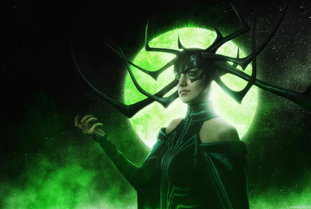The image features a character that resembles Hela from the Marvel