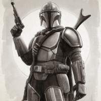 the Star Wars franchise. This is a drawing of a Mandalorian,