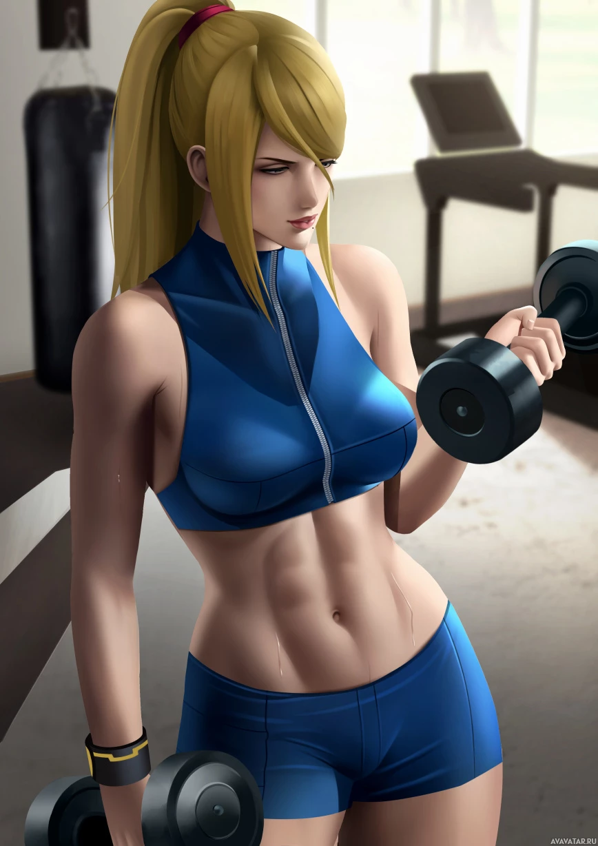 body strength, with particular emphasis on her biceps and shoulders. The character has