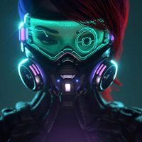 futuristic gear, including a mask with eye pieces and a chest piece that suggests she has some form of advanced technology or power source. In her hand, she holds a purple butterfly that emits