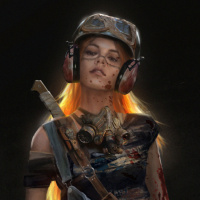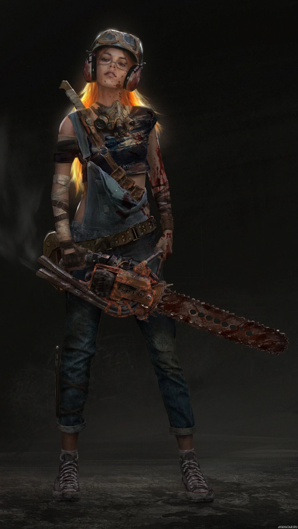 На картинке изображен женский персонаж из видеоигры "Fallout 76". Она изображена как выжившая в постапокалиптическом мире блондинка, на ней надет пояс с различными предметами, что позволяет предположить, что она экипирована для боя или разведки. Сеттинг представляет собой мрачную, антиутопическую среду, которая соответствует эстетике игры.
