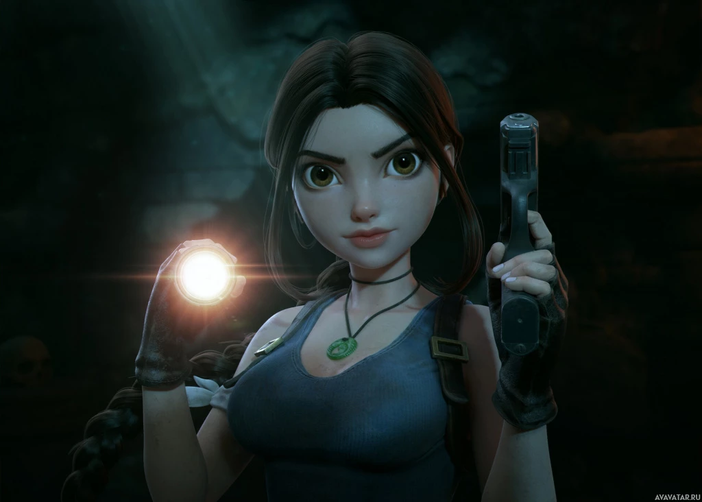 The image features a character who appears to be Lara Croft, the protagonist from the "Tomb Raider"