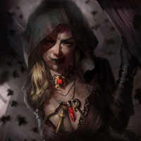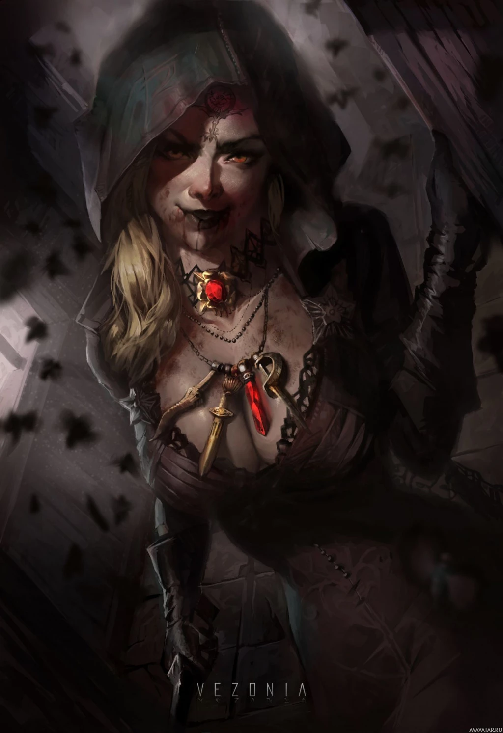 The image depicts an illustration of a character that resembles Dimitrescu Daughter,