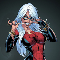 Black Cat, a fictional supervillainess in the Marvel Comics universe. She is depicted with long