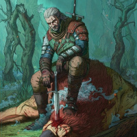 a dark forest or wilderness area, typical of the fantasy and action-adventure genres that "The Witcher" game is known for.