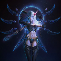 white hair. She is depicted in an artistic style typical of digital illustrations or animations, wearing armor and holding a staff. The character has a detailed design, suggesting she might be from