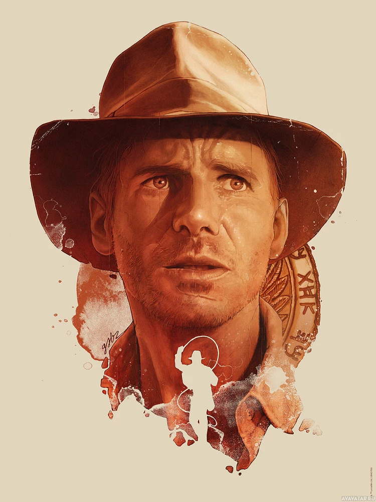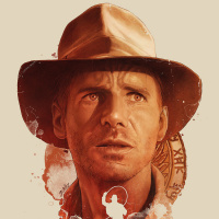 Indiana Jones, portrayed by the actor Harrison Ford. He is wearing a hat and looking towards