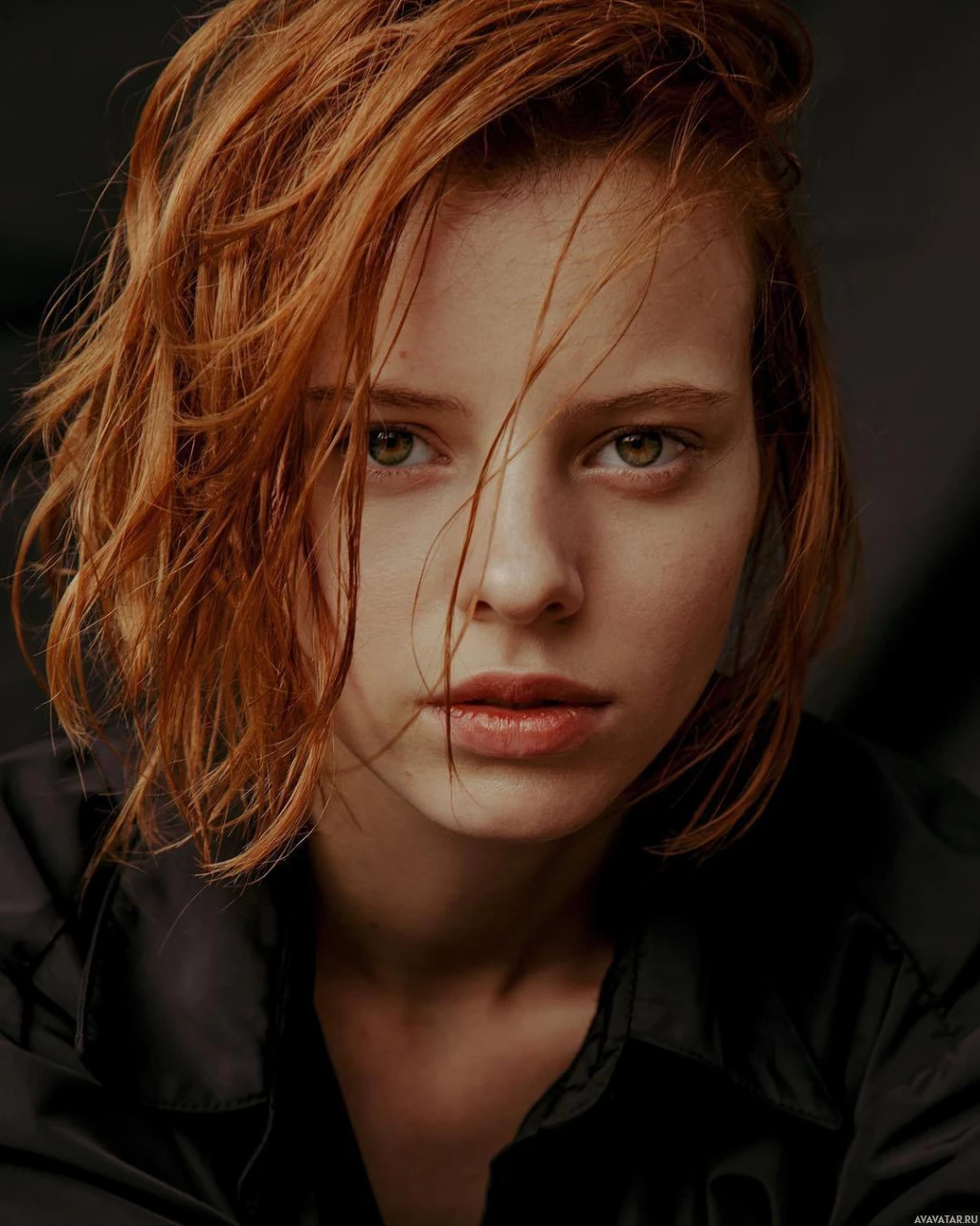 На картинке изображена молодая женщина с рыжими волосами. Кажется, что она смотрит прямо в камеру, а выражение ее лица нейтральное. Освещение на фотографии мягкое и теплое, что создает приятную атмосферу.