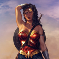 The image features an illustration of Wonder Woman, a fictional superhero character from