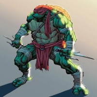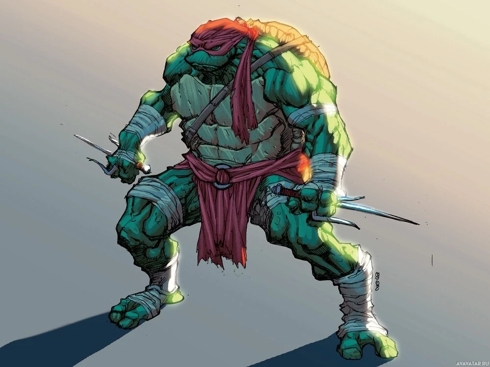 The image depicts a character that is well known as Raphael from the Teenage