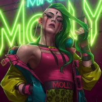 dark eyeliner and her expression has a somewhat intense or rebellious look, which complements the overall edgy theme of the image. The background features