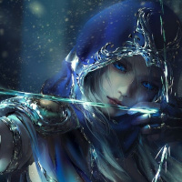 a fantasy story or game, possibly an archer or hunter due to the presence of the arrow. The background has a misty, dark quality with hints of frost or ice crystals, enhancing