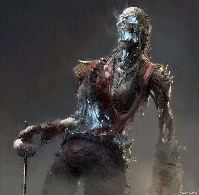 The image depicts a character that appears to be a zombie with human-like features. It has