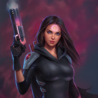 a female character holding what appears to be a pistol. She is dressed in tactical gear, which includes