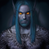 blue hair. This character appears to be from the fictional race known as drow in fantasy settings, which are typically associated with elven-like traits but have their own distinct culture and mythology within