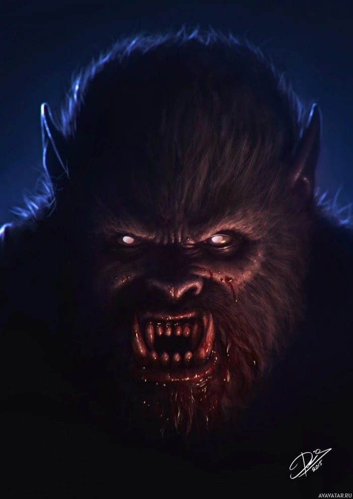 a fantasy creature that appears to be a werewolf. It has the features of a wolf, such as