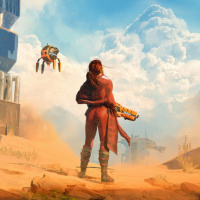 object in the background. The setting could be interpreted as futuristic or