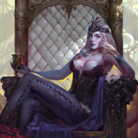 intricate designs on the throne and in the background, suggesting a richly detailed environment.