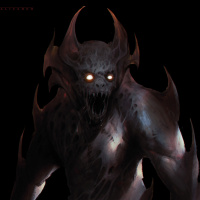 The image depicts a monster with horror-themed elements. It has sharp teeth, red eyes that suggest malice or insanity, and an overall menacing appearance. The creature is not human but rather some kind of demonic or malevolent entity.