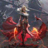 a sense of authority or leadership. There are also hints of magical elements like lightning and smoke, indicating that she might possess powers or be involved in