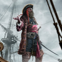 the deck of a ship. This character is typically associated with the genre of pirate-themed stories, often found in adventure books or films that involve high seas adventures and