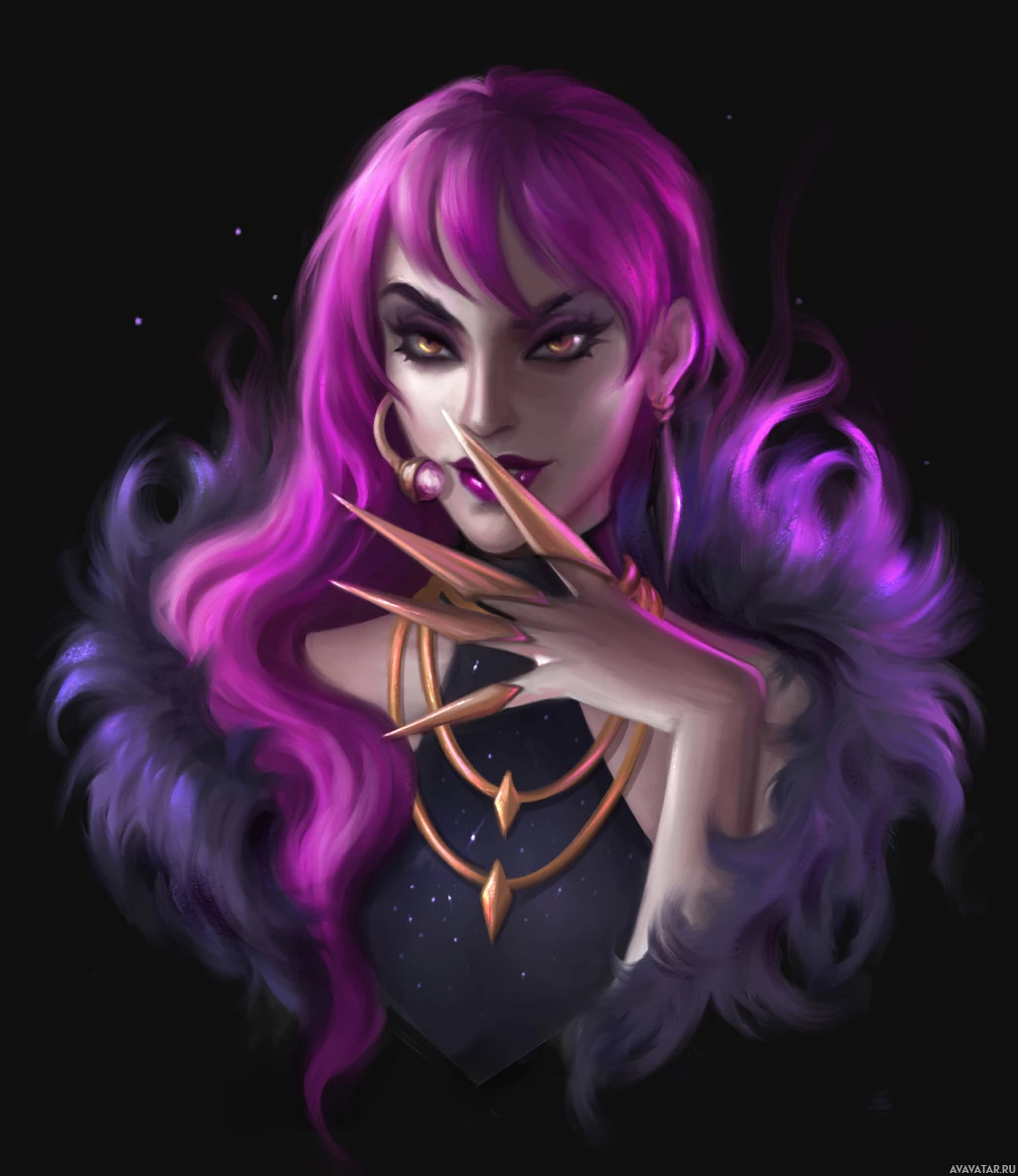 a commanding presence. They are adorned with what appears to be jewelry or accessories such as earrings and bracelets. The background is dark and seems to have a star-