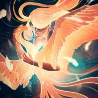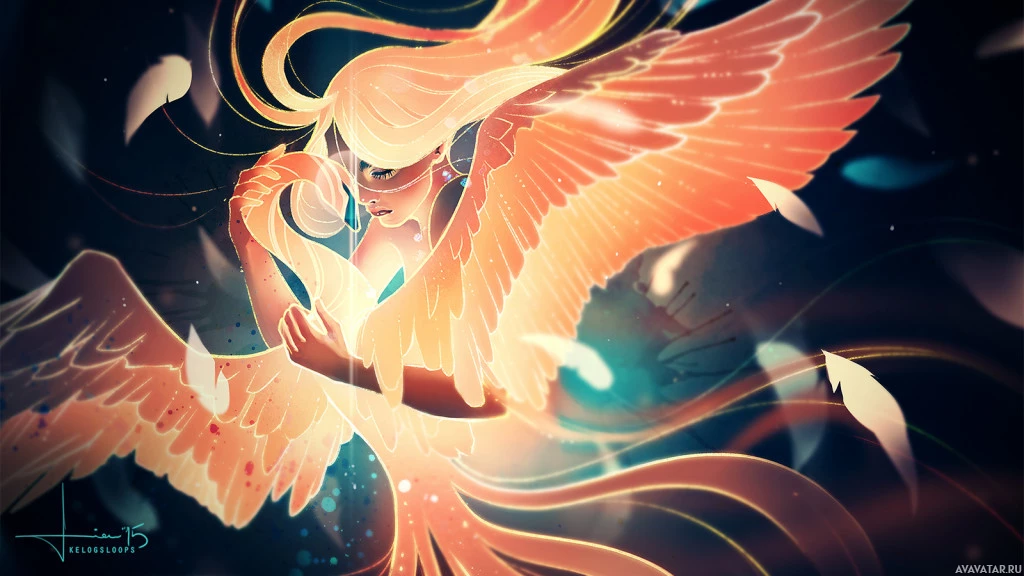 The image features a character that appears to be a combination of human and bird elements. This character has human-like arms and legs, but also features such as wings, feathers, and what seems to be