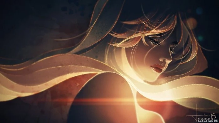 flowing hair. She has an ethereal and serene expression on her face. The art style is reminiscent of fantasy or illustrative artwork often seen in