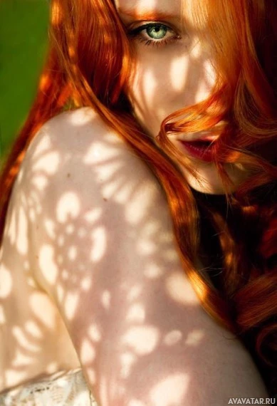 red hair. They are looking slightly away from the camera, and their features have a delicate and poised appearance. It appears to be an artistic or professional portrait, as indicated by the quality of the lighting and the subject's pose. There is no text visible in the image.